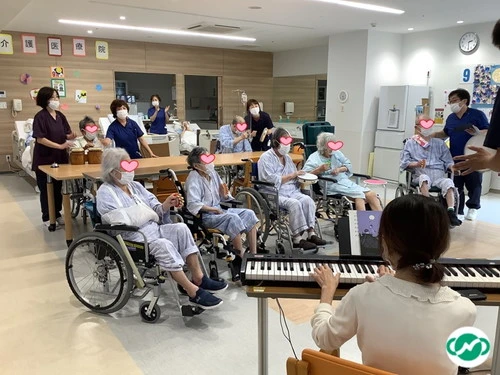 9月3日に介護医療院で音楽会を開催いたしました。ピアノの演奏者に今回も屏賀 照枝さんをお招きしました。屏賀 照枝さんはボランティアで定期的に行われる音楽会の演奏を引き受けて下さっています。